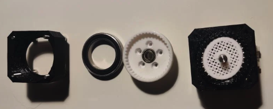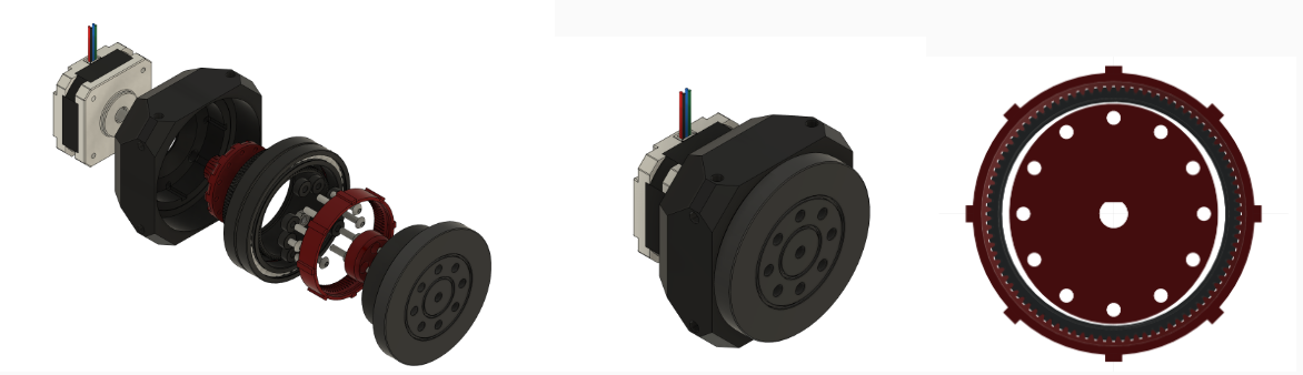 - Initial attempt: custom 3D-printed harmonic drives (1:50, 1:20 ratios)