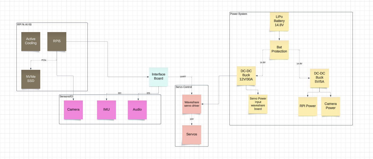 | Audio System | - Microphone - Speaker - Amplifier | - Enables audio interaction - Feedback system - User communication | TBD |